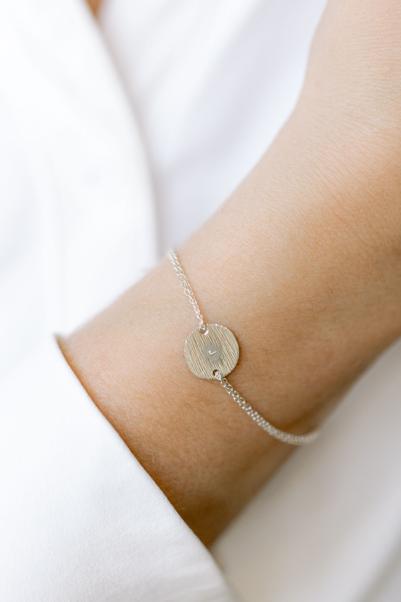 Anders dan machinaal graveren, worden bij deze armbanden de letters met de hand in het zilver geslagen. Elke letter, initiaal of cijfer wordt door Anouk een voor een ingeslagen met een hamer en slagletter-stempel. Deze techniek geeft het sieraad karakter. Geen armband is precies hetzelfde en juist dat maakt het zo speciaal.