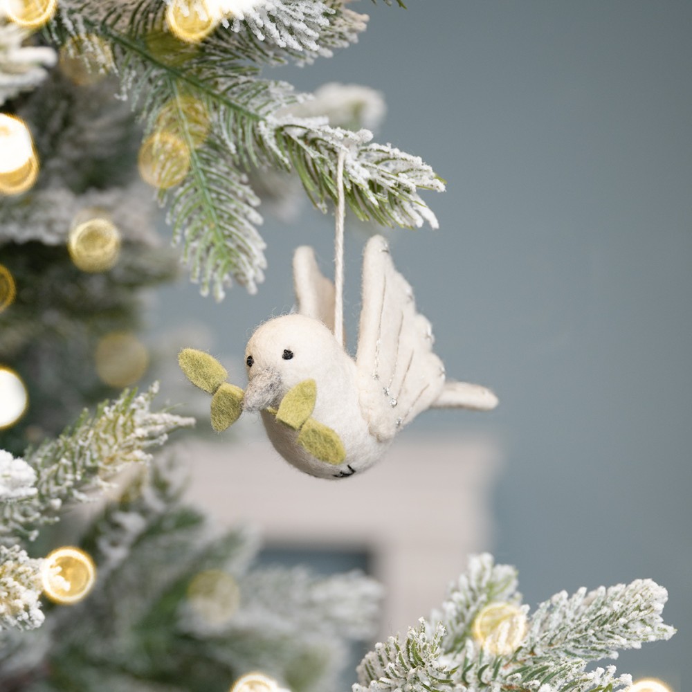 Vilten kersthanger vredesduif met olijftakje – Sjaal met Verhaal