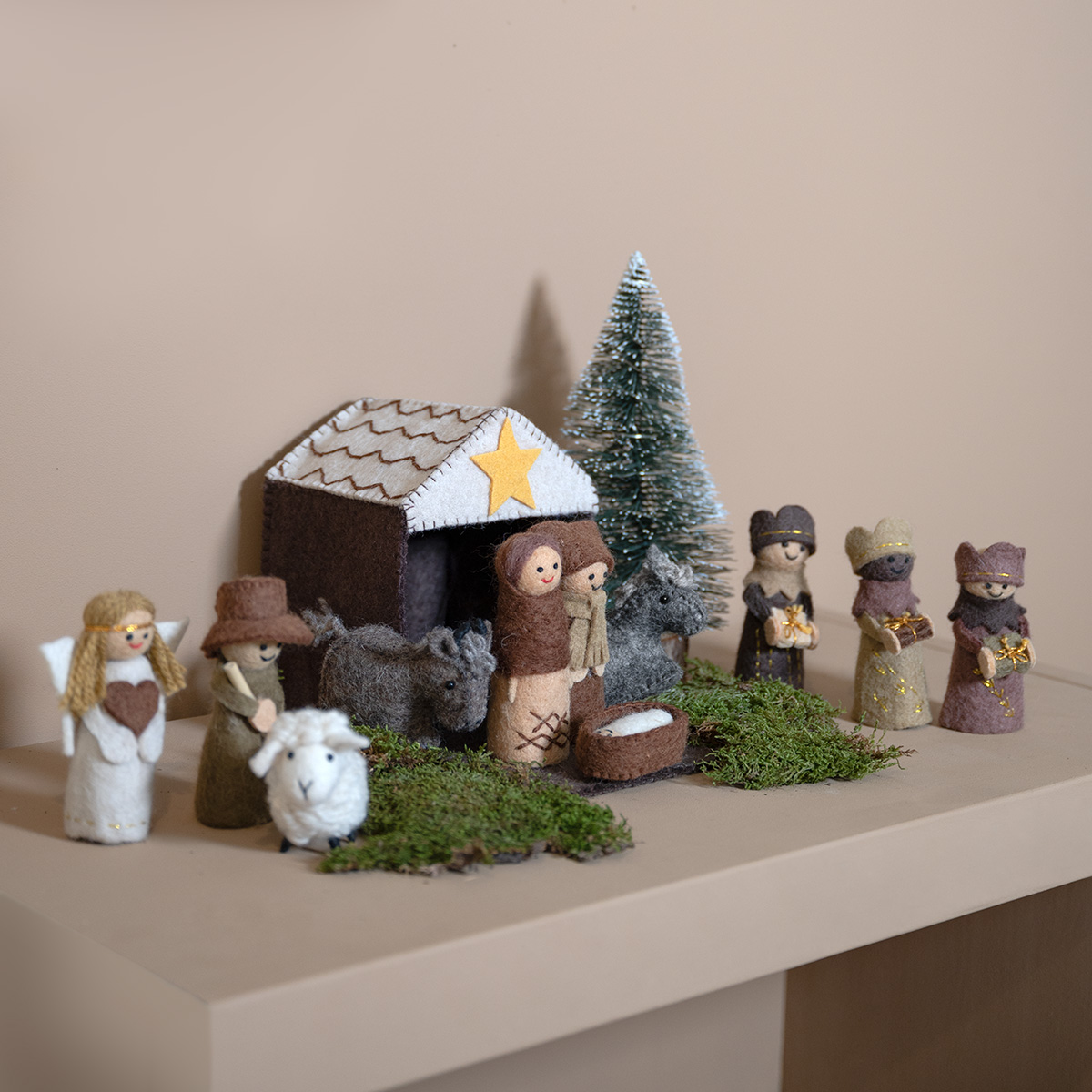 Voor dit seizoen uitverkocht, de laatste kerststallen in rood-groen, roze of blauw zijn nog wel op voorraad!Vilten kerststal van Sjaal met Verhaal in mooie rustige bruine kleuren. De kerstfiguren passen allemaal in het stalletje van vilt (afmetingen 15 x 13 x 11 cm), waardoor het heel compact op te bergen is. Het pakket bevat de volgende 11 kerstfiguren in een stalletje: Jezus, Maria, Jozef, de Drie Koningen, een engel, de herder, een os, een ezel en een schaap. We verkopen deze kerststal ook in deze kleurvariant.Deze vilten kerststallen worden met de hand gemaakt door vrouwen in Nepal. Sjaal met Verhaal biedt deze vrouwen naast een vast inkomen ook een veilige werkplek, begeleiding en ondersteuning. Een prachtig cadeau wat heel erg lang mee zal gaan, mét een goed verhaal!